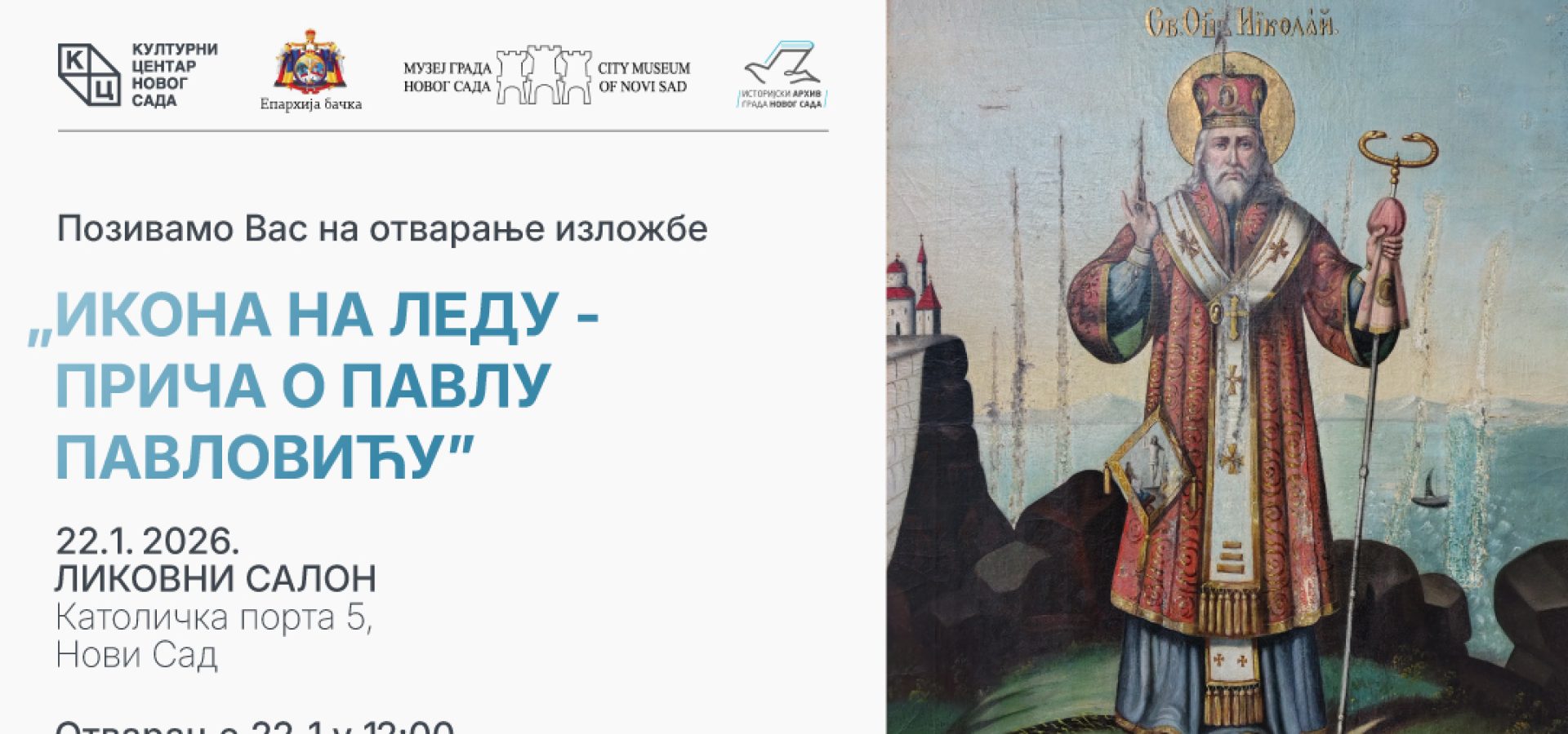 Документарна изложба „ИКОНА НА ЛЕДУ ПРИЧА О ПАВЛУ ПАВЛОВИЋУ” од 22. јануара у Ликовном салону КЦНС