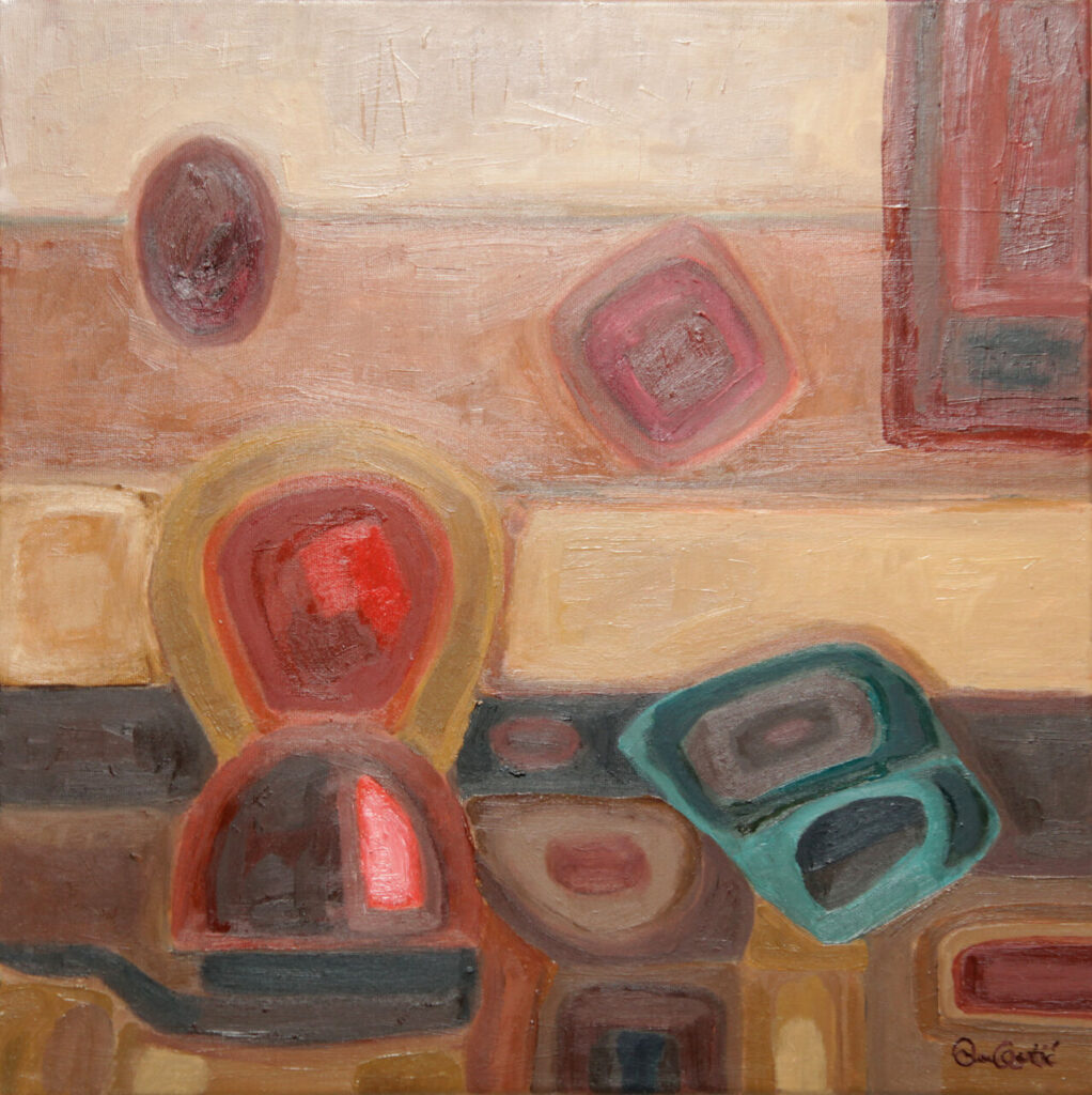 Четири палете боја, као четири музичара у гудачком квартету, четири облика апстракције, четири слична, а толико различита сазвучја боја и израза, на сцени звуче избалансирано, усаглашено и у хармонији, обликујући јединствен звук и енергију.