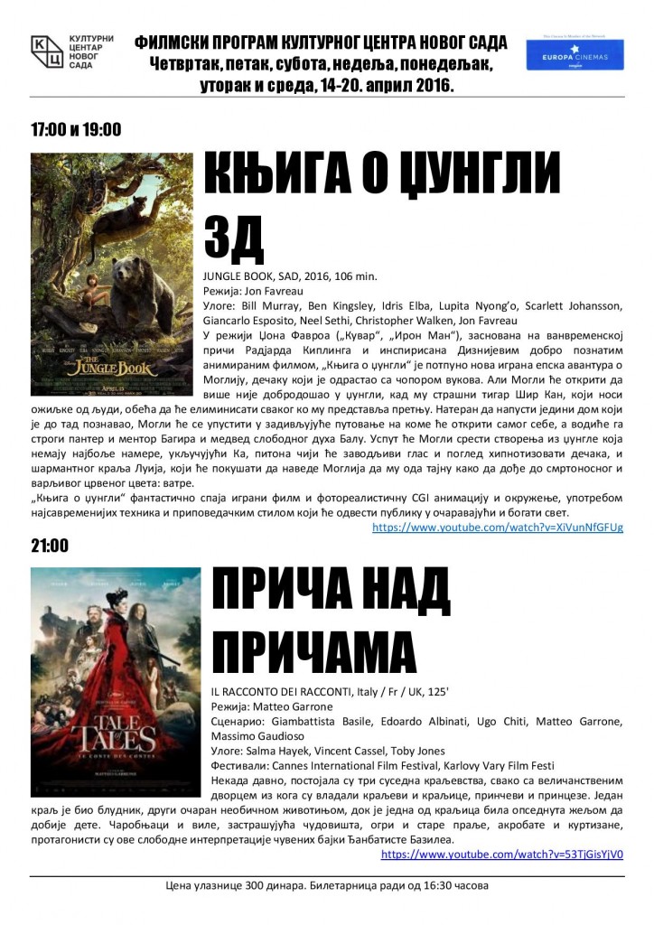 Филмски програм Културног центра од 14 – 20. априла