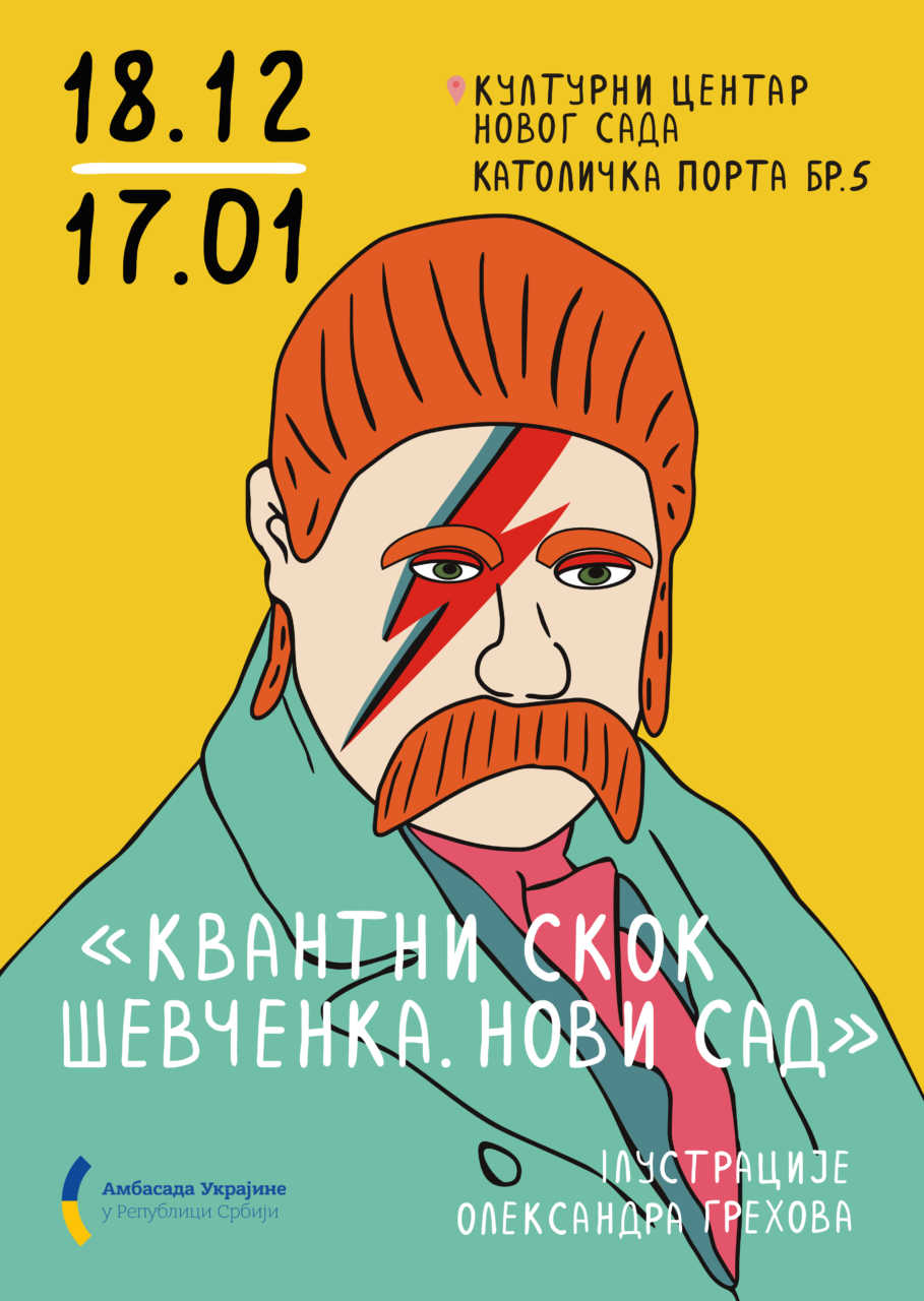 Изложба приказује еклектичне сусрете Тараса Шевченка са ликовима из глобализованог света масовне културе. Свака илустрација, сваки сусрет је квантни скок у тело и свест Другог. Ко је од њих странац, а ко је свој, и шта чека Шевченка у следећем скоку-преображењу? Својим очима моћи ћемо да видимо од 18. децембра до 17. јануара у просторијама Културног центра Новог Сада.