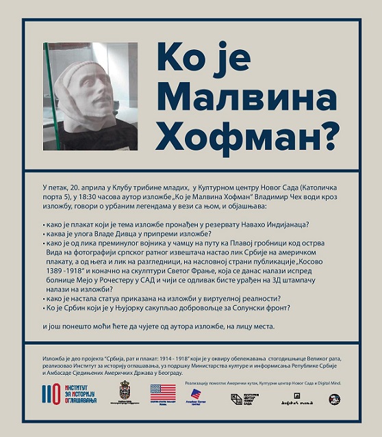 У петак, 20. априла у Клубу „Трибине младих“ Културног центра Новог Сада, у 18:30 часова аутор изложбе „Ко је Малвина Хофман?“ Владимир Чех води кроз изложбу, говори о урбаним легендама у вези са њом, и објашњава: